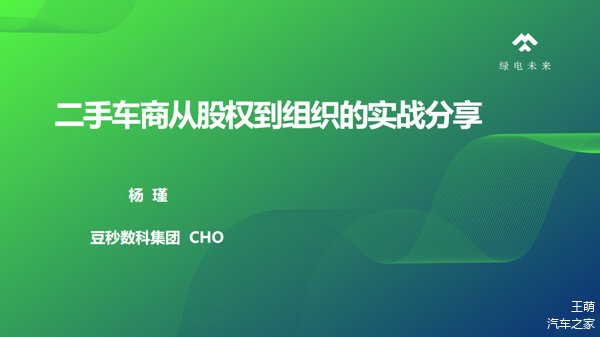 本内容来自于第二届绿电未来二手车实战交流会议分享分享嘉宾:豆秒数科集团CHO 杨瑾整理和部分内容调整王萌,二手车小胖原创