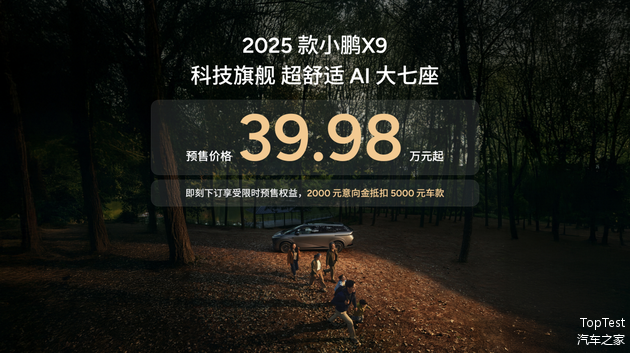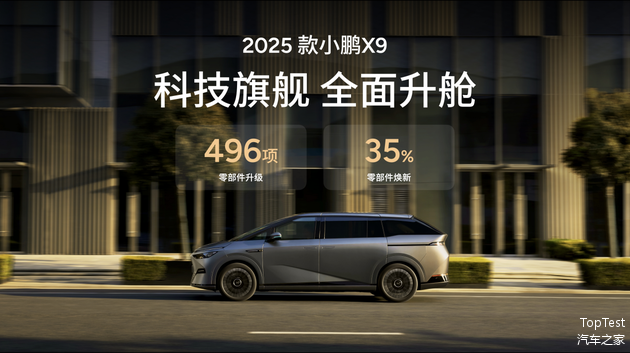 4月8日,小鹏汽车正式推出2025款X9纯电MPV并启动预售,预售价格39.98万元起。据企业介绍,该车型在现款基础上实现496项零部件升级与35%零部件焕新,全系标配图灵AI智驾系统。