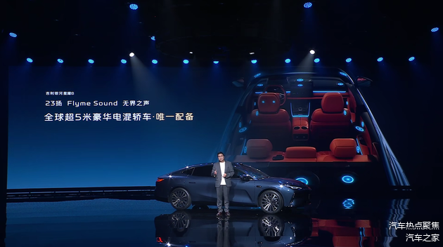 吉利银河星耀8率先搭载23扬声器Flyme Sound无界之声音响系统,其配备2000W独立功放与7.1.4全景声布局,支持4大虚拟场馆音效、4个声场位置、6种预设EQ模式及7个独立频段自定义调音。用户身处车内任意座位,Flyme Sound无界之声均可自动调整声场,让用户全程沉浸在天籁之声的包覆中。