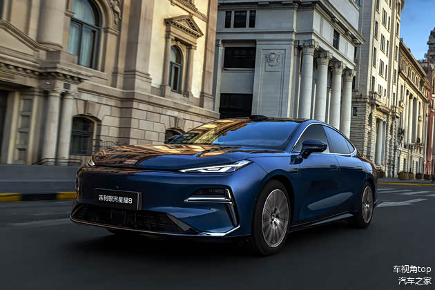 外观方面,吉利银河星耀8混动版与纯电动轿车主要区别在于车头的设计。保险杠上不再有“破损”的发光元件,而是内置大量 T 形镀铬部件,下部有一个完整的进气口。此外,与电动汽车一样,混合动力车型也配备了无框车门和可伸缩把手。