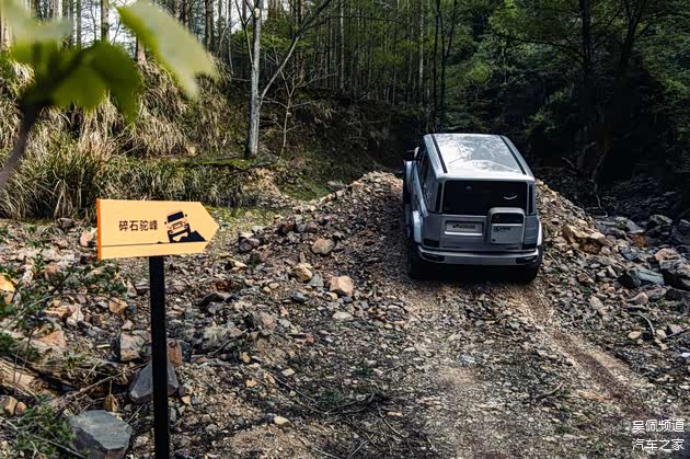 在本次试驾的丛林穿越中,最深刻的印象有两点,一是在各种爬坡和交叉轴脱困的测试里可以明显感受到它的电四驱系统是在工作的,扭矩真的分配在了有附着力的车轮上,整个越野体验都是慢而稳地用过,越野强度并不低的情况下也没有出现多少空转和打滑的现象,也得益于它可选择19寸的AT胎。
