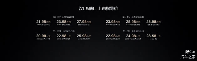 此次,唐L和汉L的上市,比亚迪称之为“划时代旗舰”,两款车在超级e平台、自研的高阶智驾等方面,均实现了标配,体现出比亚迪的诚意。这两款“门面”车型就位后,20-30万价格区间比亚迪又要发力了。