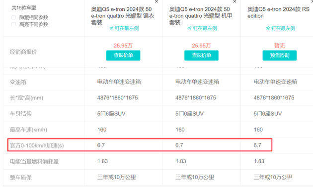 在加速性能方面,奥迪新能源车型表现平平,车辆性能、智能驾驶辅助、车机系统等方面也相对滞后。奥迪Q5 e-tron标准版百公里加速耗时长达9.3秒,高性能版本也需6.7秒,而特斯拉、小米SU7的高性能车型百公里加速时间可达到3秒左右,差距明显。