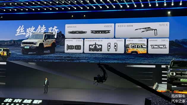 发布会现场北汽越野也带来了一款官改套件版本车型——丝路铁骑,该套官改稿件包括了锰钢材质的前后杠,车顶平台,侧爬梯,锰钢侧踏板,锰钢下护板以及多功能备胎牌照架,灯罩和涂装车衣,总计价值28,888元,本月内限时优惠价18,888元。
