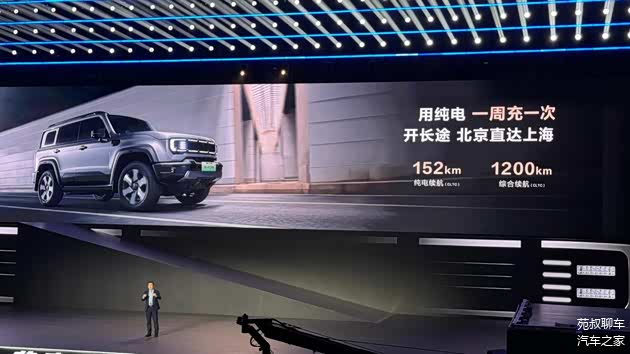 BJ40增程最大的不同就是动力系统,它使用了一块40.3kWh的三元锂电池,可以提供CLTC工况152km的纯电续航,搭配与享界同款的增程器,可以让车辆在时速145km/h的情况下,也可以保持发电量与耗电量持平,配合82L的油箱可以保证BJ40增程的综合续航也达到了1200km。