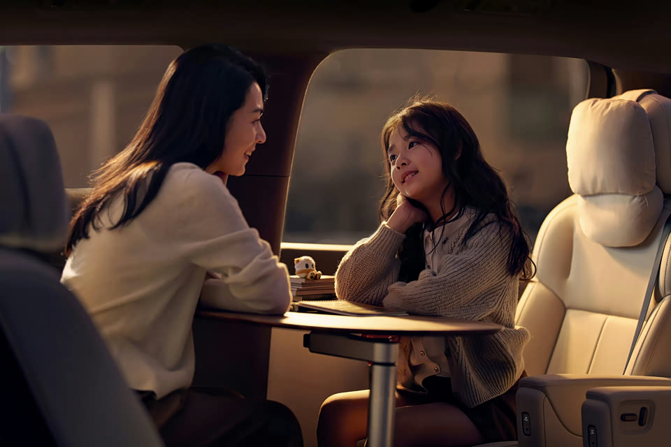 理想MEGA将推出家庭版,看图猜测是前排座椅可以向后旋转至第二排,期待一下。
