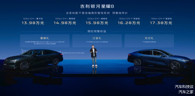 预售政策的诚意同样令人惊喜。13.98万元的起售价已经极具竞争力,而限时赠送的价值12800元的23扬声器Flyme Sound音响和价值8800元的VIP电动行政座椅,更将性价比推向极致。在传统豪华品牌动辄30万+的市场中,银河星耀8以不到一半的价格提供了超越对手的产品力,这种降维打击无疑将重塑中大型豪华轿车的市场格局。