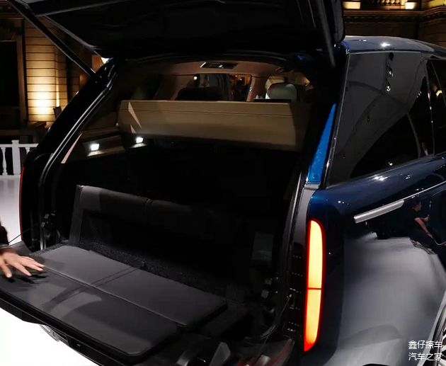 车型尺寸方面,新车长宽高分别为5058/2047/1870mm,轴距为2997mm,定位中大型SUV。翼子板等处大量采用镀铬装饰展现豪华感。车辆尾部,竖置的尾灯很有辨识度,尾部采用天地门设计。