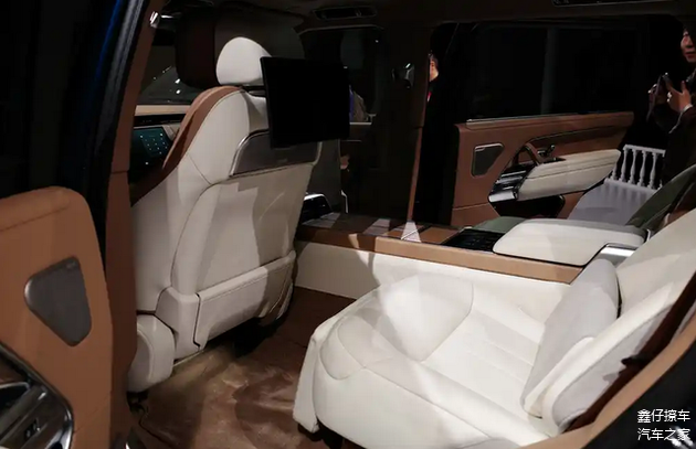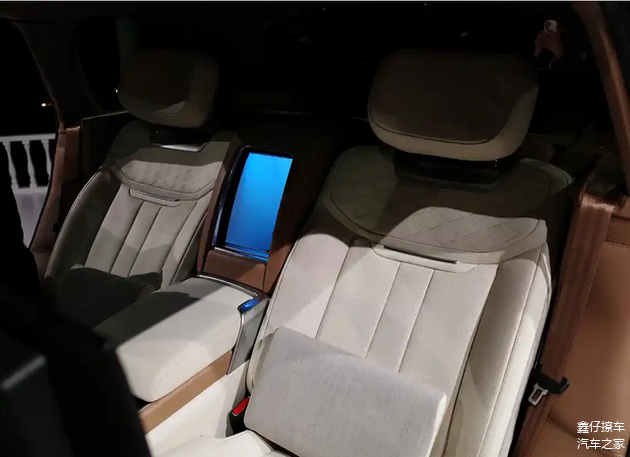 车内采用四座布局,第二排两个独立座椅,拥有两个双13.1英寸后排屏,还有后排小桌板,车载冰箱,后排座椅带有腿托。前排与后排都配备电动调节、加热、通风、按摩。新车还配备英国之宝35扬声器。