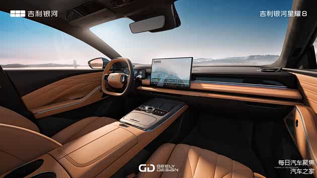 设计是星耀8的第一张王牌。5018mm的车长与2928mm轴距勾勒出优雅修长的车身线条,0.25超低风阻系数不仅提升续航,更赋予其轿跑般的动感姿态。而“涟漪美学”设计语言将中式哲学融入现代工业,比如“飞檐虎视”大灯以传统建筑飞檐为灵感,配合“旭日东升”贯穿式尾灯,夜晚点亮时宛如一幅流动的水墨画。更令人惊叹的是车色工艺——主打色“霁海蓝”复刻明代宣德霁蓝釉的烧制技艺,历经3000小时极端环境测试仍能保持色泽如新,这种对细节的偏执,甚至超越了部分豪华品牌的标准。