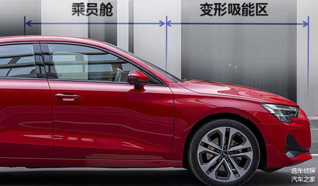 碰撞吸能溃缩区前后车身使用可变形钢材,约300-800MPa,通过折叠变形吸收碰撞能量,同时将冲击力导向车底纵梁。