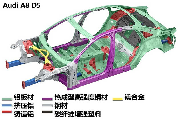 在量产车领域,使用激光焊接技术可以把车身焊得密密麻麻,比如奥迪的激光焊接强度比传统焊接高30%,其锐棱技术虽然增加了成本,模具加工时多花一倍功夫,但车身钢板严丝合缝,刚性更强。对于车架的A柱和B柱来说,至少需要使用1500Mpa的热成型钢,才能保护车架的完整。