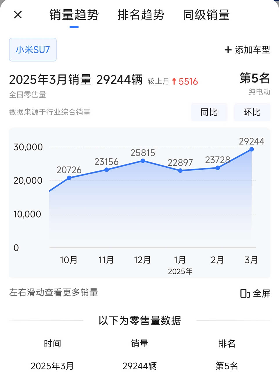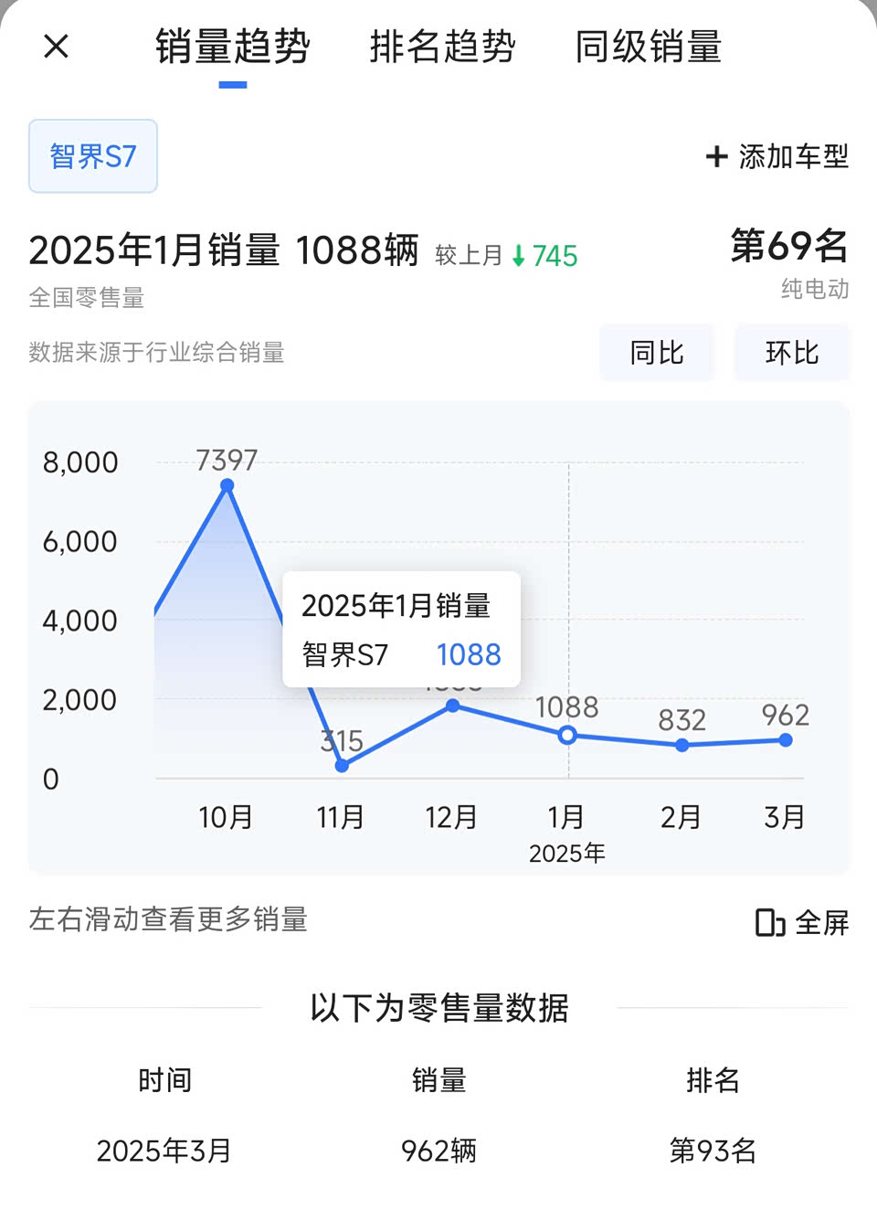 智界S7和小米SU7销量走势对比。 简直是天壤之别,假如价格可以弥补一切,你认为智界S7降价多少销量能追平小米SU7。
