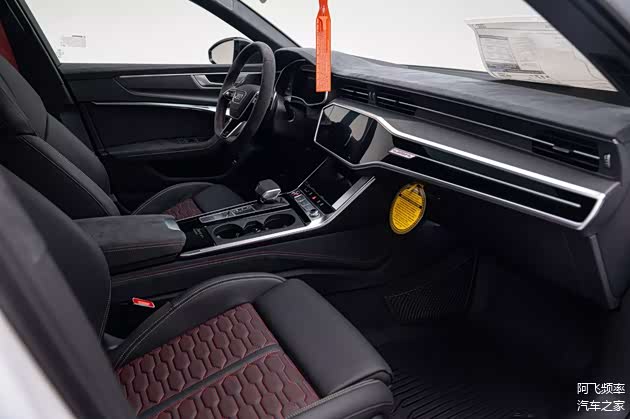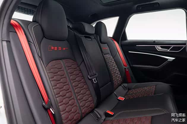 奥迪RS 6 Avant GT内饰使用了大量碳纤维饰板、Alcantara面料与黑色皮革构成主体,红色绗缝缝线和铜色装饰条点缀其间。桶形运动座椅采用蜂窝纹缝线设计,头枕下方刺绣“RS 6 GT”标识,搭配深红色安全带,瞬间点燃驾驶欲望。此外,作为限量版车型,中控台镶嵌限量660台的序列号铭牌,地垫、门槛板等位置均带有GT徽章,诸多专属身份标识让仪式感直接拉满。