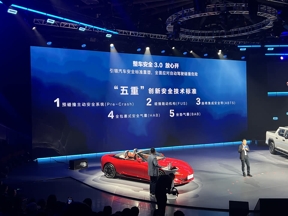 三、落实安全平权,除了通过ADAS和VMC实现主动安全防护外,还将带来第二代全栈线控底盘和主被动同步升级的整车安全3.0系统,此外今年也将量产能量密度达400Wh/kg的半固态电池,并在2027年落地上汽首款固态电池——光启电池。