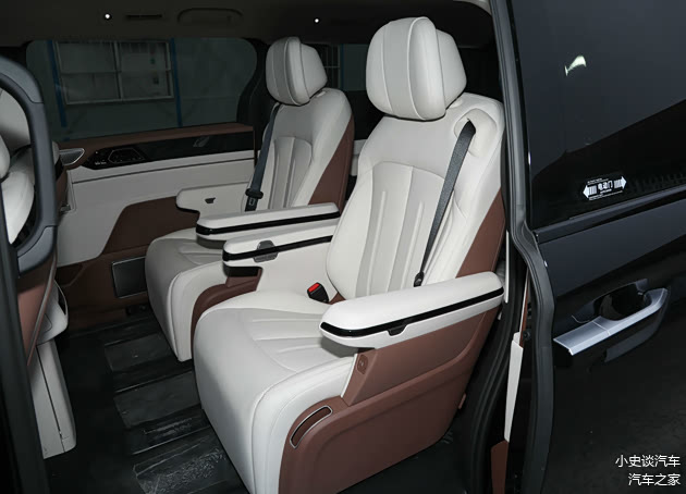 布局方面,新车采用2+2+3式的7座布局,座椅采用Nappa真皮材质包覆,第二排配备两张独立座椅,提供电动腿托、座椅通风/加热、按摩等功能,第三排座椅配备有三个头枕,并支持一键电动翻折,整体向后折叠使得第三排座椅放倒后,后备厢能形成几乎纯平的地板,提升储物能力。