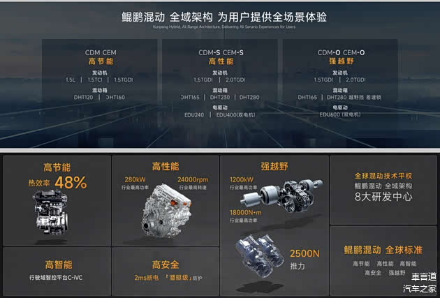 更具突破性的是奇瑞构建的完整混动技术体系。鲲鹏混动架构包含三大产品序列:高节能的CDM/CEM系列中, 风云A8实现实测2000km+综合续航和2.68L/100km超低油耗;高性能的CDM-S/CEM-S系列中,瑶光CDM-S以4.26秒零百加速媲美超跑;强越野的CDM-O/CEM-O系列中,山海T2凭借1240mm涉水深度和18000N·m轮端扭矩征服复杂路况。这种"全域架构"思维使奇瑞混动产品能适应全球多样化需求,无论是中东60℃高温、北欧-42℃极寒,还是南美30%超长坡道,都能提供稳定性能。