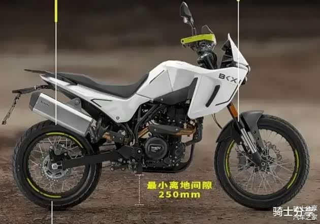 贝纳利BKX250最高离地间隙高达250mm,这意味着它的通过能力能够达到一些大哥级别的车型,而这主要得益于它长行程悬挂和大尺寸轮毂的配比。
