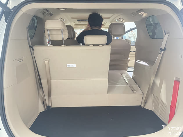 据上汽通用别克官方透露,全新别克GL8陆尚的后备厢常规状态下可容纳4个高尔夫球包;第三排座椅放倒且第二排正常使用情况下可放置2辆26吋自行车。而从实车可以看到,全新别克GL8陆尚拥有颇为规整的后备厢,第三排座椅放倒后并不能嵌入到地台当中,这也是为了保证后排安全而做出的取舍。