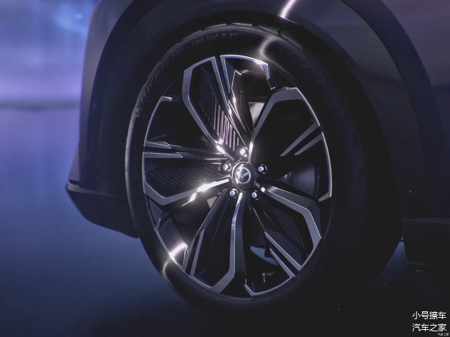 侧面造型方面,车顶带着明显的弧度,带着点小溜背造型,线条感显得比较干练;腰线采用了分段式设计,点缀出了车身侧面的层次感;门把手采用了弹出式造型,能够起到降低风阻的作用;轮眉和侧裙部分设计有隆起的黑色饰板,凸显了力量感;轮毂采用了双五辐式造型,风格还算大气,整体有着一定的跨界风格。