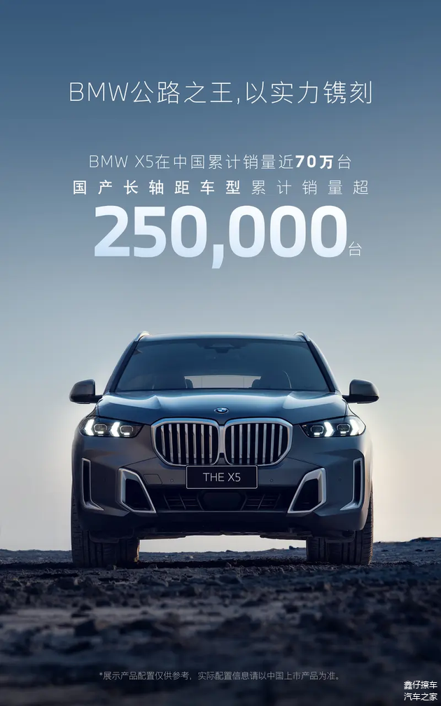 BMW X5自1999年推出首代车型以来,历经四代产品演进,累计在全球范围内交付超210万辆。其中,中国市场的累计交付量接近70万辆,占据全球销量中的重要份额。