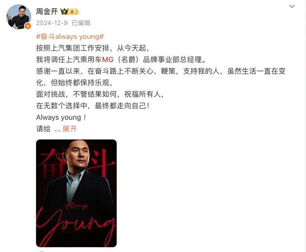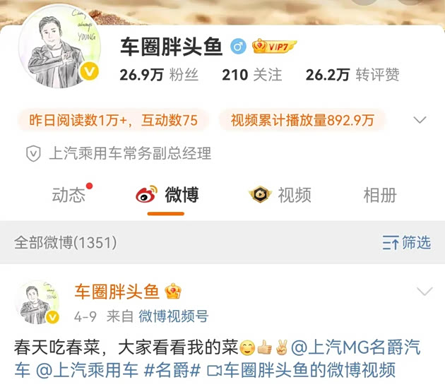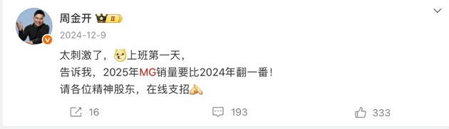 现如今,车企高管微博营业已经成为常态,但要说谁是车圈网红高管里在公域平台最真实、自然的人,我想MG品牌事业部总经理周钘(微博名:周金开)一定算是其中之一。