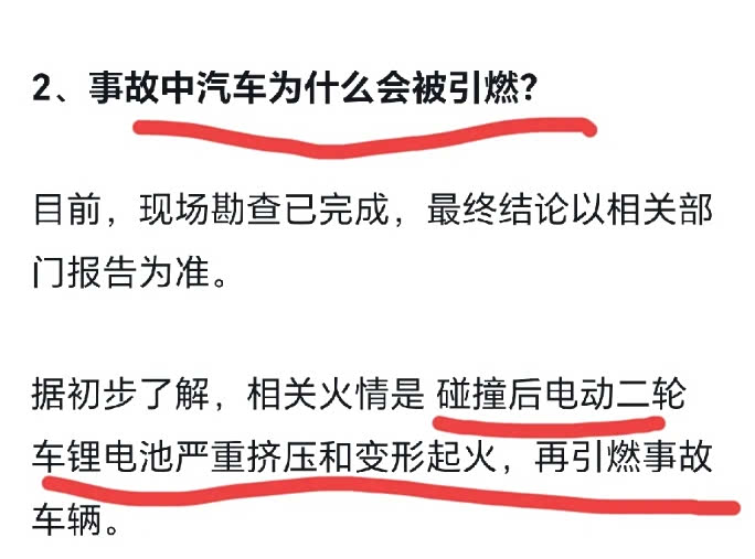 这次小米汽车确实是被电动二轮车引燃的。从上次起火和这次起火的图片来看,第一次起火的小米汽车已面目全非,在这一次起火的小米汽车还保持了大体的样子。
