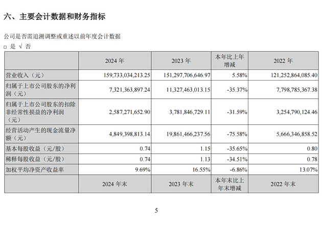 2024年,长安汽车营收1597.33亿元,同比增长5.58%;归母净利润73.21亿元,同比下降35.37%,扣非净利润25.87亿元,同比下降31.59%;预料之中,销量越来越高,利润越来越低...