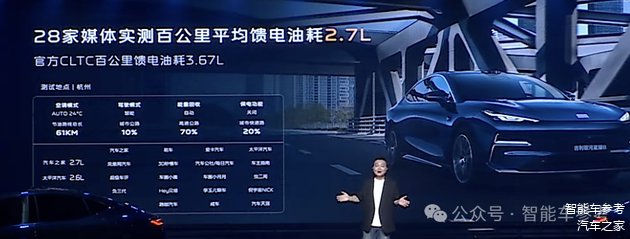 EM-i更省,100公里只用不到3.4个油,吉利介绍称充满电一箱油能跑1600km。