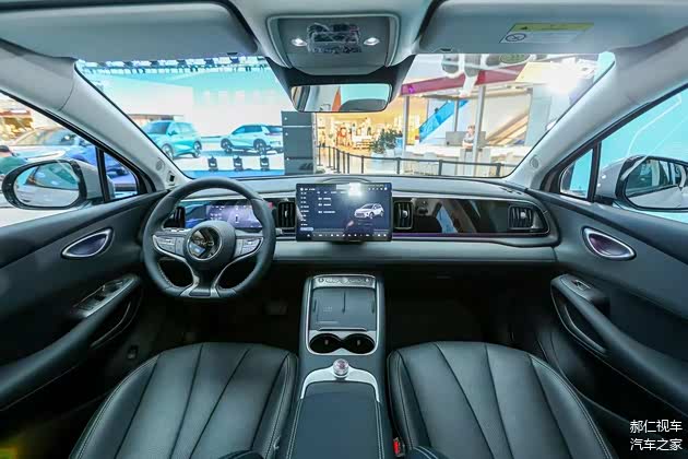 内饰延续海洋美学风格特点,主仪表台采用对称式布局,横贯整个仪表台的黑色面板,嵌入8.8英寸全液晶仪表与12.8英寸悬浮Pad形成层叠式搭配,层次感更丰富。