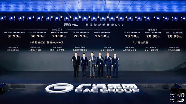 活动现场,广汽昊铂品牌焕新后的首款旗舰产品——昊铂HL也以“家庭智能新豪华SUV”的精准定位,携纯电/增程两大动力、五座/六座两种布局,共8款车型正式上市,官方指导价26.98万-31.98万元。