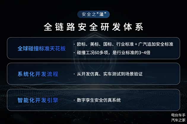 面向自动驾驶时代,广汽打造了包括智能驾驶安全、智能底盘安全、主被动融合安全及电池安全在内的全域安全技术。