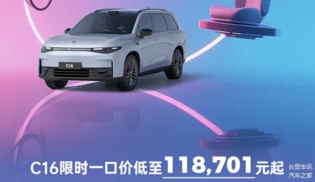 日前,我们从零跑汽车官方渠道了解到,自即日起至2025年4月26日24点,通过零跑官方平台预订C16车系,并在2025年6月30日(含)前完成交付的用户,可享受限时一口价118701元起。 零跑C16定位为中大型SUV,提供增程和纯电两种动力版本,目前在售车型指导价区间为15.58万-18.98万元。