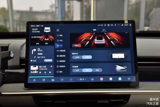 内饰方面,整体设计依旧是时下新能源车主流的简约风格,配备一块8.8英寸仪表盘以及一块15.6英寸的中控屏,而且内饰用料也能给到不错的质感。而且在配置方面也比较丰富,像8155芯片、20扬声器系统、64色氛围灯、手机无线充电、人脸识别登录等等,都是全系标配的。在智能化方面,这个价位能给到8155芯片也不错了,能保证车机系统的流畅体验。比较有特点的是,它配备SOA场景大师的功能,可实现多场景预设,全车开放38个服务模块、123个接口、支持300多个自定义场景。