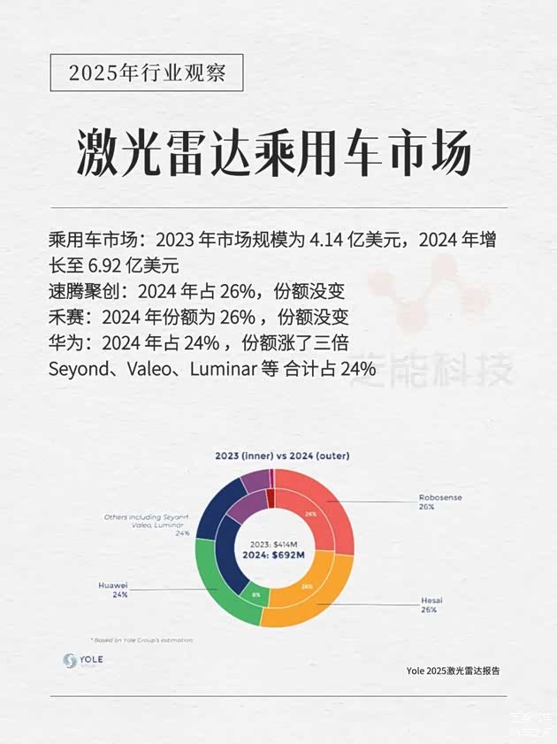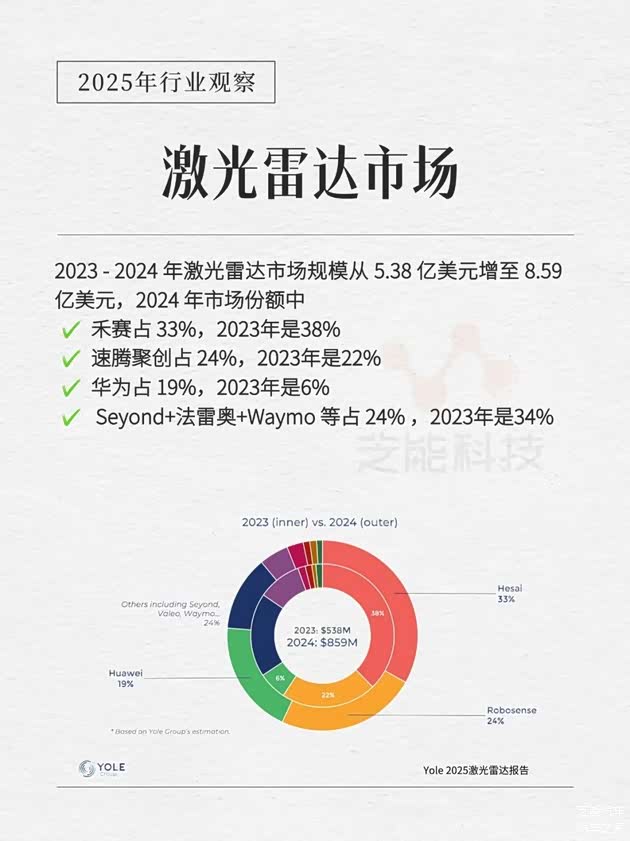 Yole集团数据显示,2024年全球激光雷达市场规模已达8.59亿美元,同比增长60%。