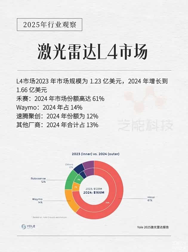 ◎ L4市场:2023 年市场规模为 1.23 亿美元,2024 年增长到 1.66 亿美元。