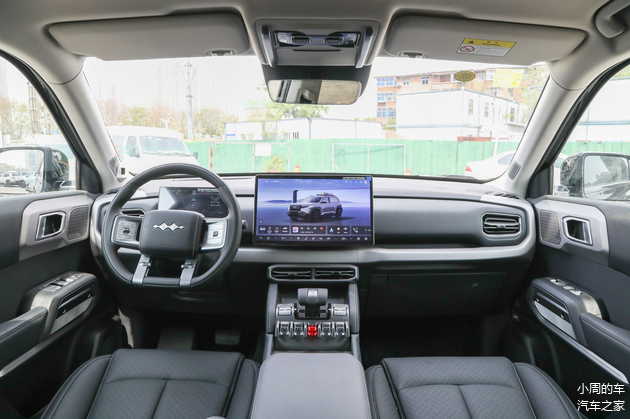 相比于极具个性的外观设计,钛3的内饰则是要收敛了不少,中控台采用了标准的T字形布局,大量横状线条的使用意在凸显它硬朗的一面。8.8英寸的液晶仪表以及15.6英寸兼顾了车内大部分的功能。车机内部搭载了DiLink车机系统以及12+256GB的系统存储,界面布局清晰明了,运行速度也足够快,另外像四区域语音识别控制、5G网络、应用商店等功能也都有配备。