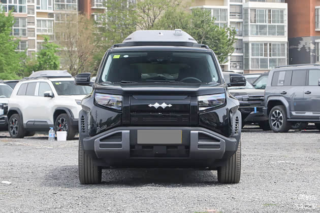 外观方面,方程豹钛3的设计让人眼前一亮,它的前脸采用了封闭式的黑化格栅,两侧连接的是倒梯形的大灯组,在灯组的上方则是布置了细长的日间行车灯带,整体看上去很是个性。在中网的下方,该车还设计了粗壮的前保险杠,接近角有25°,具有不错的通过性。