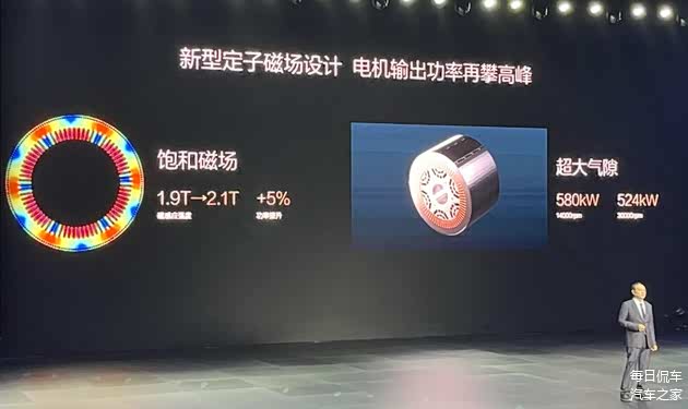 不过,真正把3万转电机实现大规模量产的,还得看比亚迪。近期上市的唐L和汉L,都是来自比亚迪的超级e平台,其中就搭载目前全球量产最高转速电机,其转速达到30511rpm,峰值功率更是高达580kW,比很多双电机的功率都大很多。