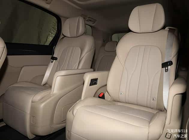 来到车身侧面,GL8陆尚PHEV采用了与陆尊一致的设计,两车的外廓尺寸也完全相同,倾斜的A柱与优雅弧线形的车顶一气呵成,双腰线采用了前低后高式的,侧裙采用了向内翻折的设计,虽然相比于陆尊车型,取消了侧面底部的L型镀铬饰条,但也同样带来了十足的立体感。最让人喜欢的还是它18英寸的多辐式铝合金轮圈,匹配了225/55 R18的规格的轮胎,恰到好处。陆尚与陆尊在车身尺寸也保持一致,长宽高5219/1878/1807mm,轴距3088mm,有着浓重的优雅和商务气质。车内采用了7座布局,前两排配备了独立座椅,除了通风和加热功能外,靠背和腿托均支持电动调节,长达800毫米的地面滑轨能够将座椅后移,实现舒展的大四座模式。多变的空间也拥有更多的用途,不愧是商务之星。