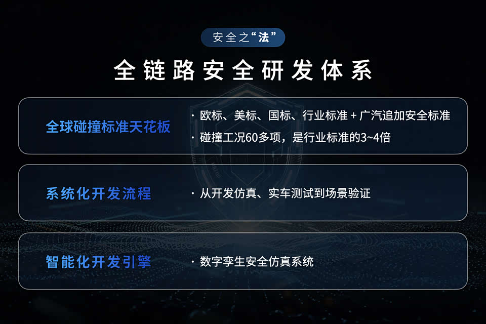 当下,我国乘用车市场L2智能驾驶功能新车渗透率已接近60%,预估2030年L2以上智驾渗透率有望攀升至90%,智能驾驶正从L2级向更高级别进阶。作为全国首批获L3自动驾驶上路通行试点资格的车企之一,广汽集团计划于今年第四季度推出首款L3自动驾驶车型。在此形势下,“广汽星灵安全守护体系”顺势诞生。该体系的全链路安全研发体系具备行业顶尖的碰撞安全标准,工况多达60余种,是行业标准的3至4倍。全域安全技术覆盖智能驾驶安全、智能底盘安全、主被动融合安全及电池安全。