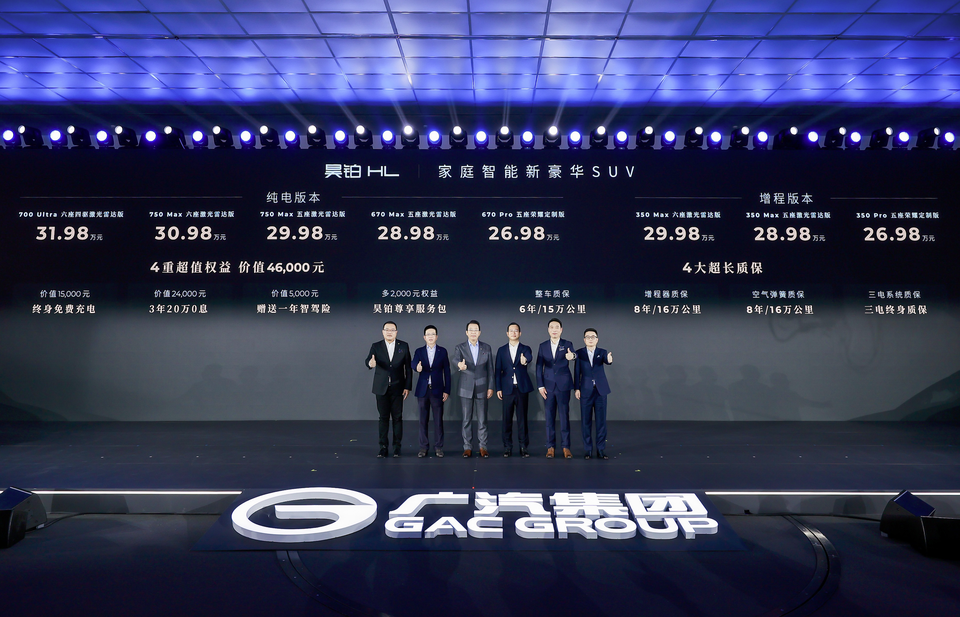 广汽旗下高端品牌广汽昊铂的全新旗舰车型——昊铂HL于当日正式上市,官方指导价区间为26.98万至31.98万元。这一价格定位,让昊铂HL在30万级家庭大六座车型中极具竞争力。