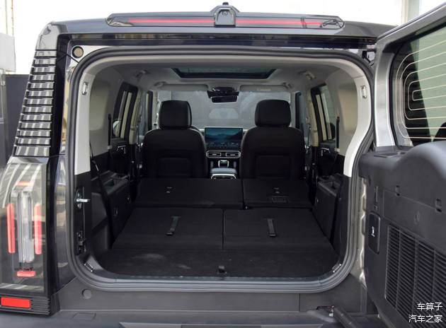 加长之后带来的好处,首先是车内的布局,采用2+3+2七座布局,第二排腿部空间达980mm,第三排座椅支持独立调节,配合1653L超大后备箱容积(二三排全部放倒),可形成近2米的"户外大床房",完美满足家庭出行、露营探险等多元场景需求。
