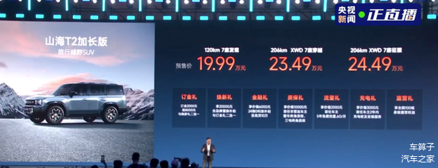 山海T2加长版共推出3款车型,预售价区间为19.99万元-24.49万元,将于4月18日正式上市。起售价格相比标轴版本会贵了不少,除了增加车身长度,配置也提升了不少。