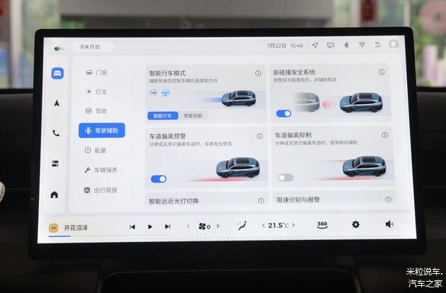 而在日常通勤时,整车的辅助驾驶功能让我印象深刻,5个外部摄像头+6个超声波雷达组成的感知矩阵,加上灵眸智驾系统,能为车辆带来L2级的功能辅助,除了能缓解疲劳的全速自适应功能之外,车道偏离预警、前方碰撞预警及主动刹车功能在复杂的城市路况下作用较大,记得有一次接孩子放学时遇上了鬼探头,好在及时触发了自动刹车功能,才避免了潜在的风险。
