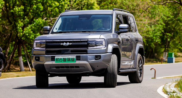豹5智驾版以硬派SUV与生俱来的力量感征服全场:前脸矩形进气格栅如机甲盾甲般厚重,两侧大尺寸电流矩阵大灯与格栅无缝融合,纵向灯带如电流脉冲,勾勒出凌厉的视觉层次;方程豹品牌LOGO嵌入格栅中央,与横向辐条交织成力量图腾,搭配简练却向前突进的前包围设计,将野性阳刚之气与未来科技感完美统一。车身侧面悬浮式车顶与立体腰线,仿佛矿坑岩壁的天然雕琢,诠释“硬派美学”的原始张力。