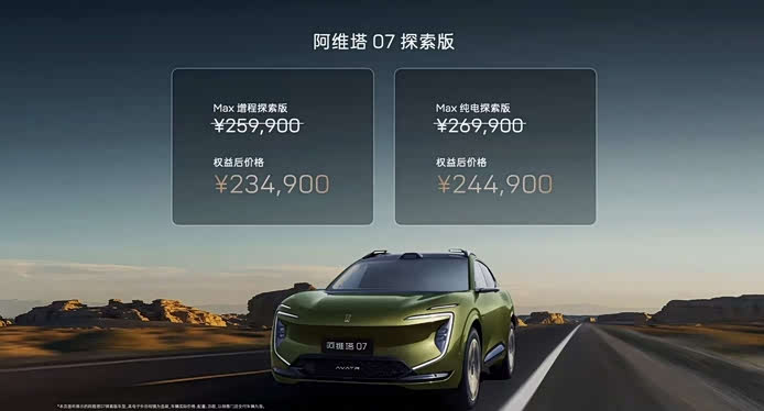 阿维塔07探索版正式登场,主打“科技+户外”组合拳。标配拖车钩、增高底盘和全地形轮胎,把城市SUV强行拉进轻度越野圈。华为鸿蒙车机和乾崑智驾系统双加持,四块大屏配零重力座椅,把座舱变成移动客厅。 另外增程版纯电能跑230公里,长途混动续航1100公里,纯电版直接怼到650公里,算是新能源市场的“水桶型”选手。不过,25万价位段既要打理想L6的舒适牌,又要防小鹏G9的智驾牌,阿维塔用华为技术打智能牌的同时,市场是否愿意为“轻度越野”的溢价买单,可能是这场跨界探索的关键看点。