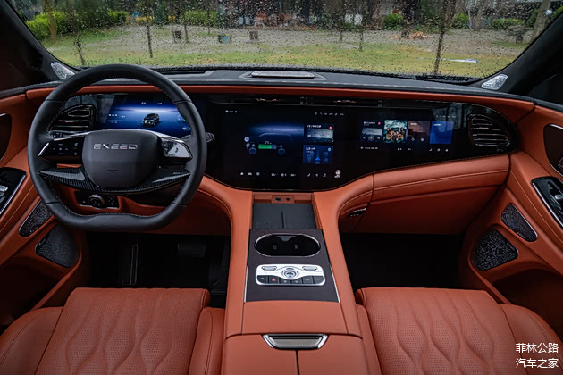钢琴漆按键和三个显示屏也在营造着科技感
