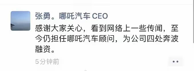 据知情人士透露,张勇此次赴英行踪十分神秘,引发外界诸多猜测,不少人怀疑他是“溜之大吉”。然而,就在大家议论纷纷时,张勇在朋友圈霸气回应:“感谢关心,我至今仍担任哪吒汽车顾问,正为公司四处奔波融资 。”