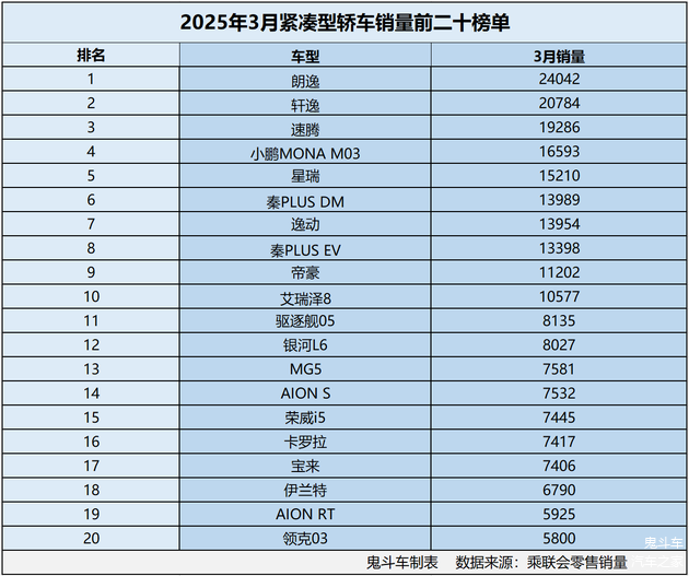销量往往能够说明问题,日前,乘联会发布3月零售销量数据,鬼哥整理出紧凑型轿车市场销量排名前二十的榜单。接下来,看看榜单上谁才是真正的赢家?为想要在4月份购车的消费者提供借鉴与参考。